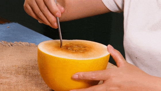 选好蜜瓜后,就要开始准备豪横吃蜜瓜的仪式了。找一个干净的地方,把蜜瓜放在桌子上,用水果刀沿着瓜蒂切一圈,然后用手轻轻一掰,蜜瓜就分成两半了。这时候,你可以看到蜜瓜的内部,那金黄色的果肉,简直让人垂涎欲滴。